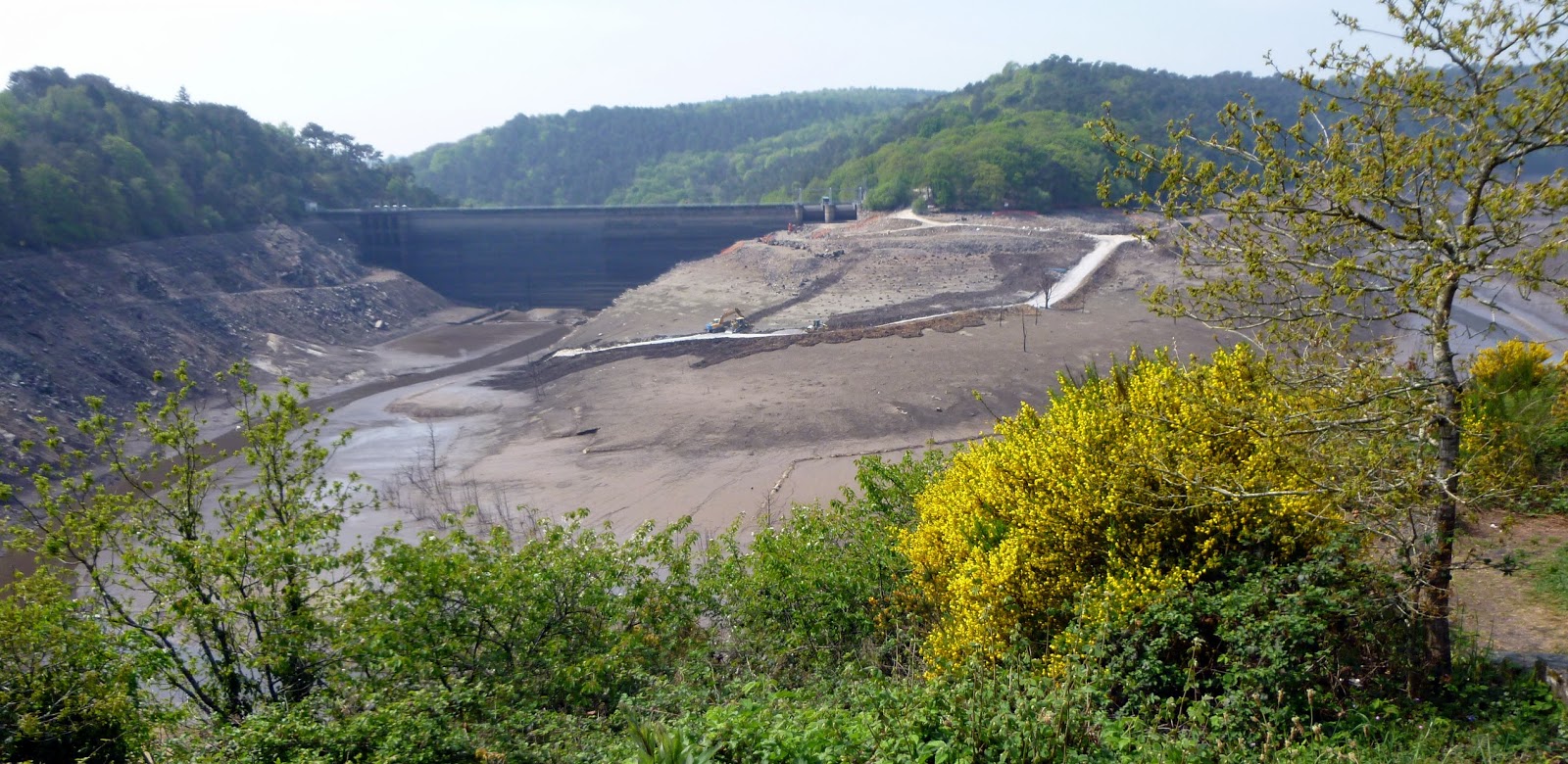 Le spectacle de cette vallée asséchée est extraordinaire, étrange, indicible, indescriptible. Un seul mot : une vision lunaire. Une immense gangue de boue séchée (qu'il faudra, durant les travaux, désenvaser en partie ; des camions s’y sont déjà mis) garde des vestiges de vie : pans de maisons, de cabanes, arbres pétrifiés, comme les troncs que l'on enfonçait jadis dans l’amont de la Penfeld, à Brest, pour les durcir et en faire des mâts, à l'époque de la marine à voile… Etrange, plus qu’inquiétant, le panorama d'un monde irréel, extraterrestre, peupléde fantômes, de légende et de korrigans qui, c'est certain, grimpent de temps à autre sur les berges pour les hanter.